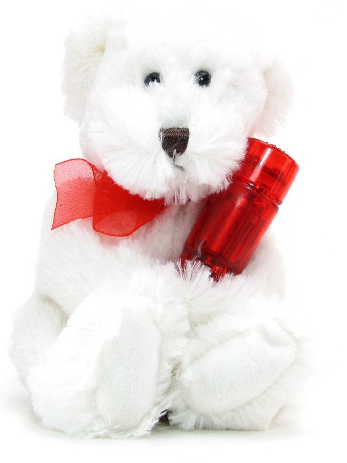 Очаровательный пушистый белый плюшевый медвежонок, способный растопить любое женское сердце, покажет искренность ваших чувств, а флакон ароматического масла для массажа поможет вам подарить вашей девушке незабываемый вечер.