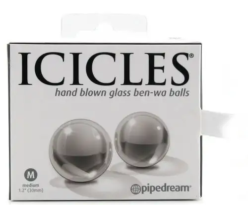 Вагинальные шарики ICICLES 42 MEDIUM GLASS BEN-WA. Сделаны из специального стекла, очень гладкие. Для более ярких ощущений можно нагреть или охладить под струей воды. Диаметр – 3 см , вес – 56 грам.