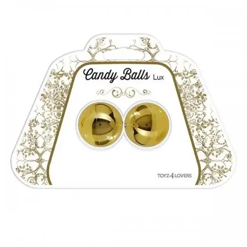 Вагинальные шарики CANDY BALLS LUX GOLD. Имеют смещенный центр тяжести. Приятное на ощупь покрытие. Диаметр шариков - 3 см, длина связки - 22 см.